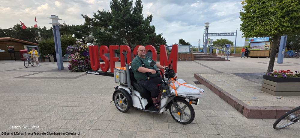 Vor wenigen Tagen starteten Timo Jannek Müller (17) zusammen mit seinem Vater Bernd Müller von den NaturFreunden Oberbarnim-Oderland eine Fahrradtour von Bad Freienwalde in Nordostbrandenburg zur Ostsee. Timo fuhr dabei ein 30 Jahre altes Fahrrad mit Elektro-Unterstützung, die allerdings nur bedingt funktionierte. Sein Vater Bernd ist seit dem 5. Lebensjahr gehbehindert und kann deshalb kein Fahrrad mehr fahren.