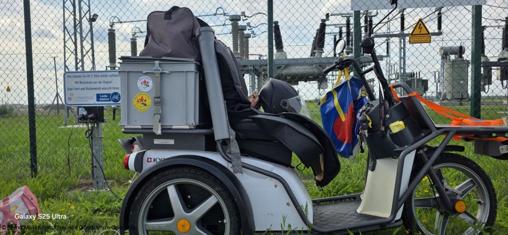 Deshalb begleitete er seinen Sohn mit einem Kyburz-Elektroroller. Dieses ist auch bereits aus dem Jahr 2013 und war insofern erschwinglich. Die Schweizer Firma Kyburz nimmt ausrangierte Schweizer Postroller zurück in die Firma und arbeitet sie wieder auf, um sie dann gebraucht vergünstigt zum Beispiel an Behinderte abzugeben, wo sie im zweiten Leben dem Behinderten ein völlig neues Lebensgefühl geben.