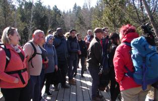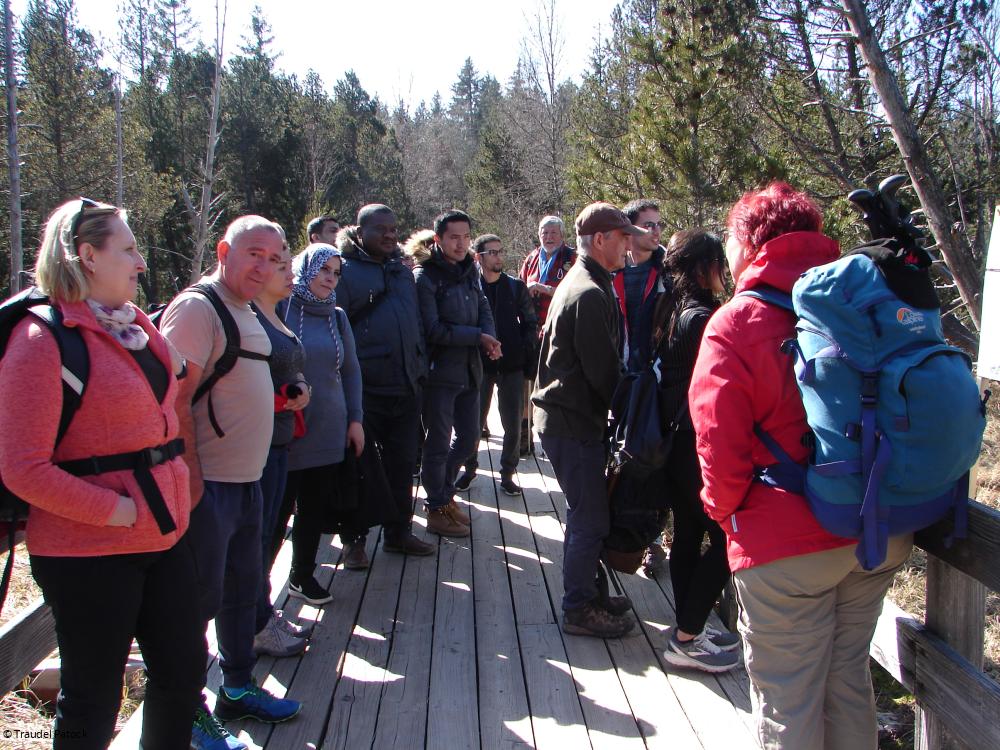 Die letzten Schneereste im Hochschwarzwald sind noch vorhanden und doch waren bei schönstem Wanderwetter 22 Menschen unterschiedlicher Herkunft und Sprache von Hinterzarten über das Hochmoor, die Lafette und den Wirbstein ins Energiedorf Breitnau unterwegs.