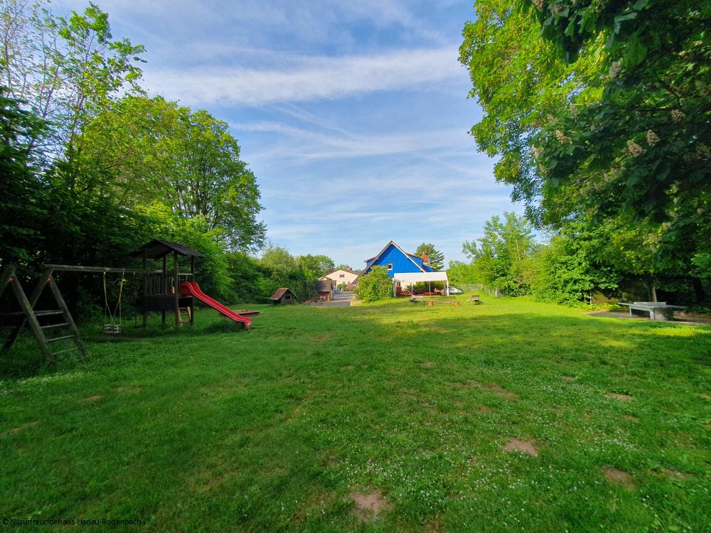 Das 2005-2006 frisch kernsanierte Haus strahlt außen blau-weiß und innen fröhlich bunt am Orts- und Waldrand von Oberrodenbach im Vorspessart. Dieser ist berühmt für seine hügelige und waldreiche Landschaft sowie seinen unzähligen und gut markierten Wanderwegen bis in den bayrischen Spessart hinein. So ist es kein Problem, das Naturfreundehaus als Ausgangspunkt für Wanderungen, Rad- und Mountainbiketouren in die Natur oder eine Tour an der hessichen Apfelwein- und Obstwiesenroute zu nutzen. Mit dem Reisebus kann man bis an das Haus heranfahren. Grillplatz, Spiel-/Liegewiese und Kinderspielplatz befinden sich direkt am Haus. Jugend- und Wandergruppen, Vereine, Schulen und Kinderhorte verpflegen sich selbst, können aber auch ein lehrreiches »Klimafrühstück« bekommen. An den Wochenenden gibt es für hungrige Wanderer eine kräftige Stärkung in der Gaststätte.