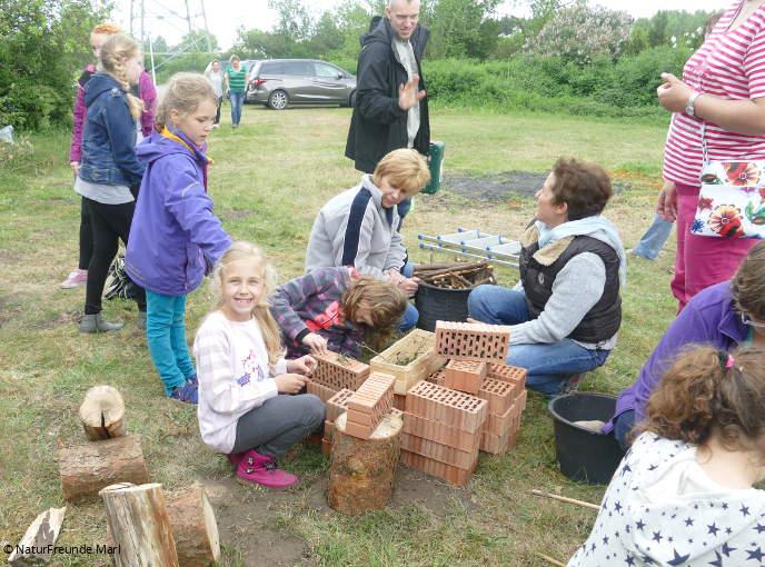 Marler NaturFreunde bauen ein Insektenhotel im Landschaftsschutzgebiet