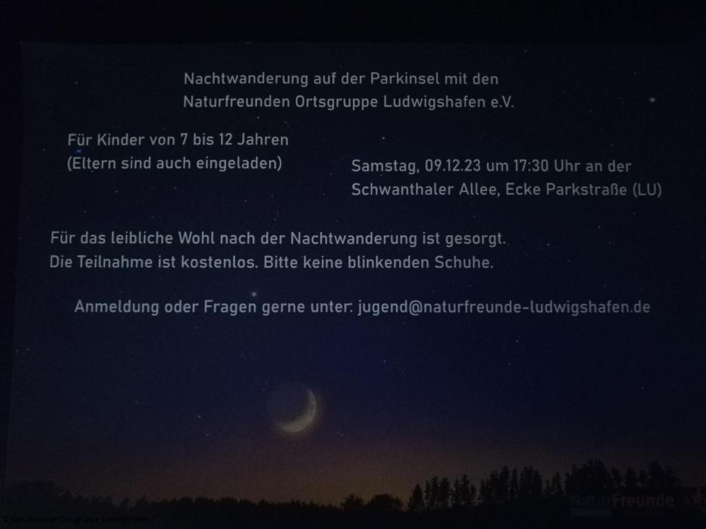 Nachtwanderung auf der Parkinsel mit den NaturFreunden, Ortsgruppe Ludwigshafen e.V.