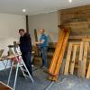 Ein weiterer ungeplanter Aufwand entstand durch das unterschiedliche Niveau der beiden zu verbindenden Räume. Stellenweise betrug der Niveauunterschied mehr als zehn Zentimeter. Glücklicherweise füllte dann ein Estrichverleger kurzfristig den gesamten neuen Raum auf. Danach konnte mit dem Innenausbau begonnen werden. Die Stahlträger wurden verkleidet, die Wände gestrichen und die Decke befestigt. Eine Wand wurde freigelassen, um in Eigenleistung eine rustikale Holzwand anzubringen.