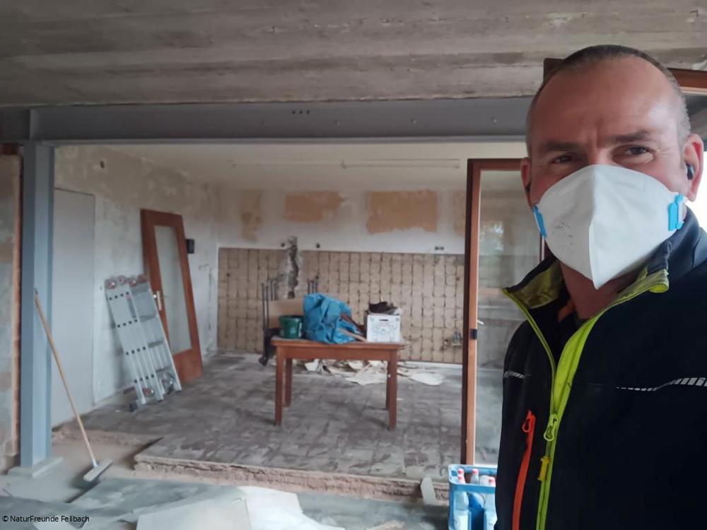 Schon im Vorfeld der Bauarbeiten hatten sich Mitglieder und Freunde bereit erklärt, einige Arbeiten selbst zu übernehmen. Und Ende Oktober 2023 begannen dann die konkreten Baumaßnahmen. Zuerst wurde die alte Küche ausgebaut, die Kacheln und die Holzdecke entfernt, der Bodenbelag rausgerissen und der Bauschutt abtransportiert. Das passierte alles in Eigenleistung.